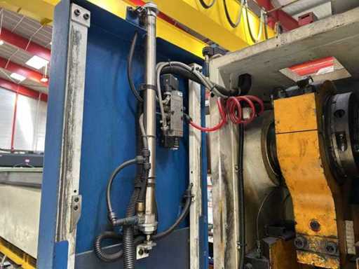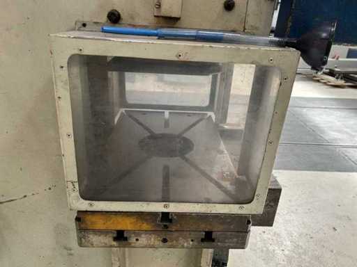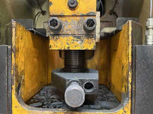 Verwendete Ganzenhals-mechanische Presse, geeignet für Schneiden, Stanzen, Formen und Montagearbeiten. Das Design bietet ungehinderten Zugang zum Arbeitsbereich sowie einen klassischen mechanischen Antrieb mit Schwungrad und Kupplung.