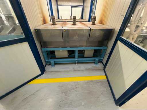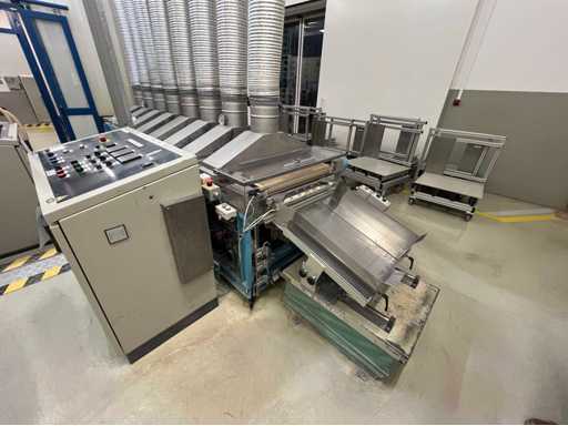 Oberflächenbehandlungslinie bestehend aus einer manuellen Einführungseinheit, Qui-Clean Blow Modell DTH-701 Oberflächenreinigungseinheit s/Nr. 040, Baujahr 2001, Hotta Modell AP-0109ST-1 Oberflächenbehandlungstunnel mit 2-zonigen elektrischen Wärmetunnel mit 8 Zonen plus Kühltunnel s/No N/A, Jahr 2001, Auf- und Abfluss-Ausführungstisch einschließlich 5 Material-Wagen
