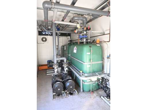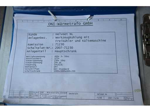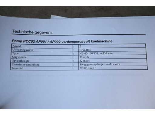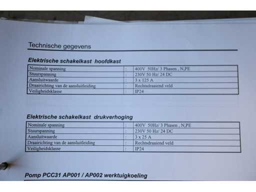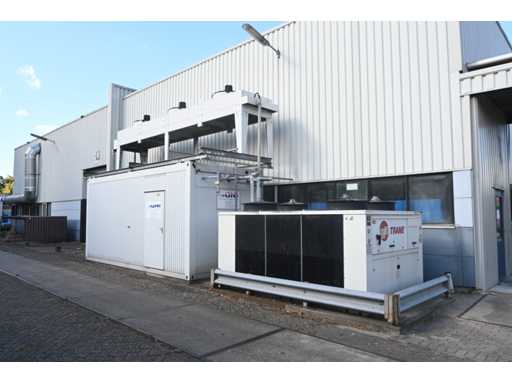 Ausgestattet mit 4 x Siemens / Oni-Pumpe, Typ: NB50-200/198 PCC31 AP001/AP002, Grundfos NB50-160/136 Standard-Blockpumpe, Inklusive 3-teiliger 175KW Ablassgebläse-Kühlanlage. Enthält den Industriekühler Trane AquaStream 2 - 335119-1. Komplett mit Rohrleitungen, Beleuchtung, Oni Siemens Steuerungssystem, Broschüre, etc. im 20" Behälter. Gebindegröße ca. L600 x B245 x H260 cm.
