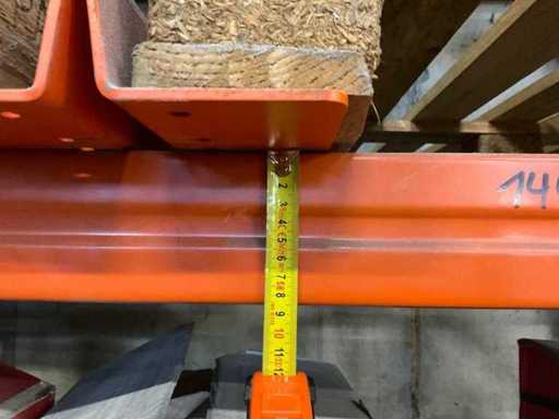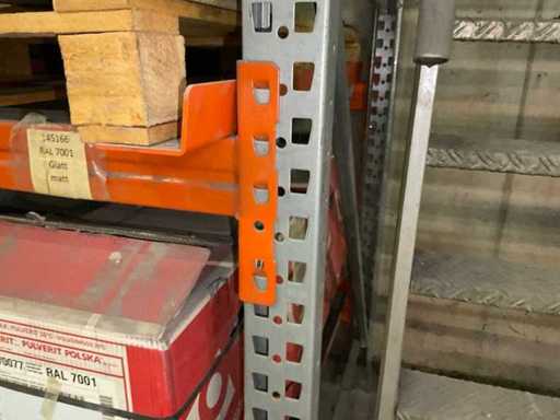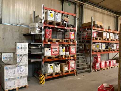 Schwerlastregal bestehend aus: 2 Ständer ca. 1100x3300mm, 9 Traversen ca. 1790mm, inkl. Palettenaufnahmen, mit Inhalt