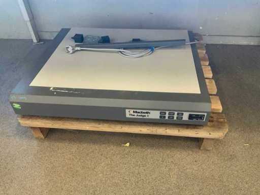 darunter: 1 Neato-Roboterstaubsauger, 1 Korb-Lauflampe, 1 Klebebandspender, Verlängerungskabel, 1 Macbeth-Farbbewertungslampenkabine, Typ: The Judge II