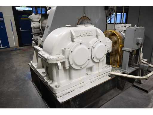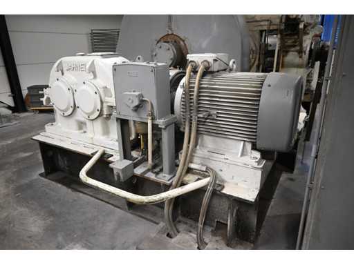 Ausgestattet mit VEM KMER 315 90KW Elektromotor, Jahnel Getriebe KA 400 100KW Getriebe, Steuerung, Dunstabzugshaube, etc.
