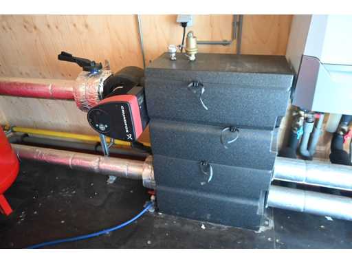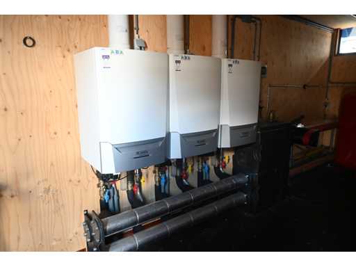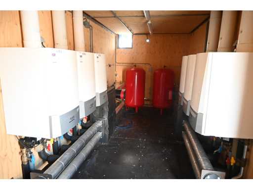 Bestehend aus 6 x Remeha Quinta Ace 115 Kesseln inklusive 6 x Grundfos UPML 25-105-130 Umwälzpumpe, Remeha Kaskadenregler, 2 x Grundfos X Magna 3 65-150 F340 Umwälzpumpe. Komplett mit 2 Ausdehnungsgefäßen, Rohrleitungen, Zählerschrank, Booklet und Beleuchtung im 20" Container. Gebindegröße ca. L600 x B245 x H260 cm.