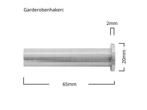 Restposten - Garderobenhaken, rund, Silber Aluminium, 67 mm lang, Kopf mit 20 mm Durchmesser