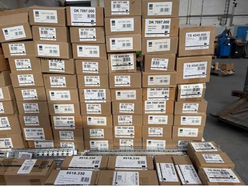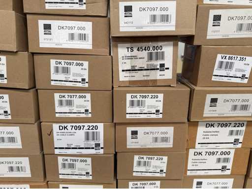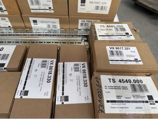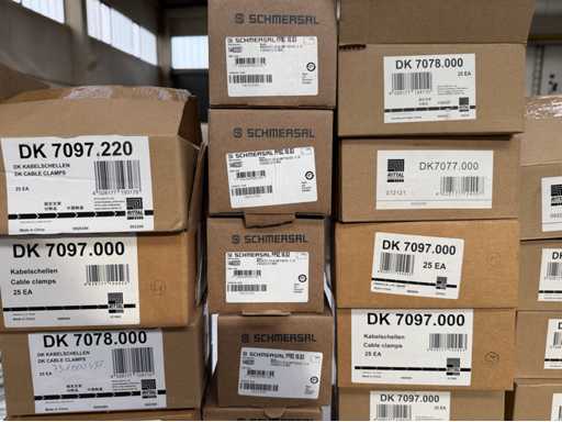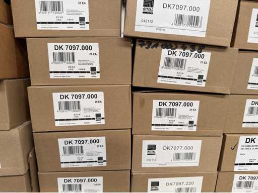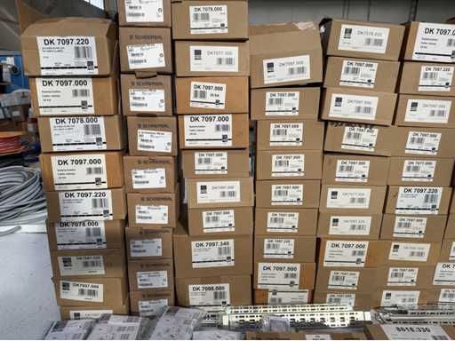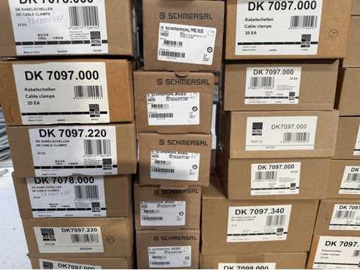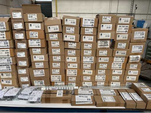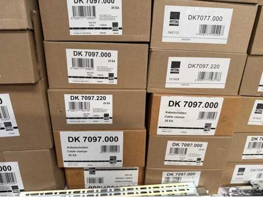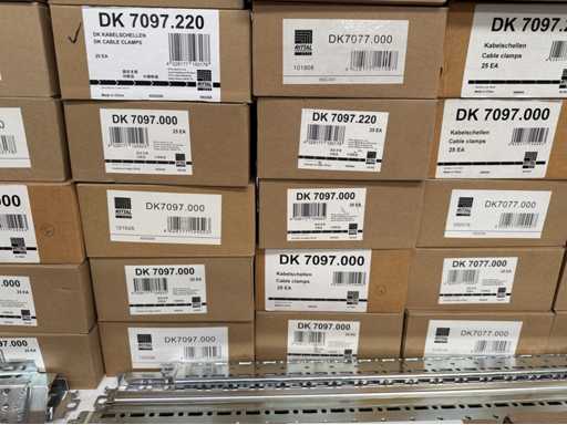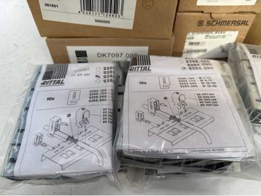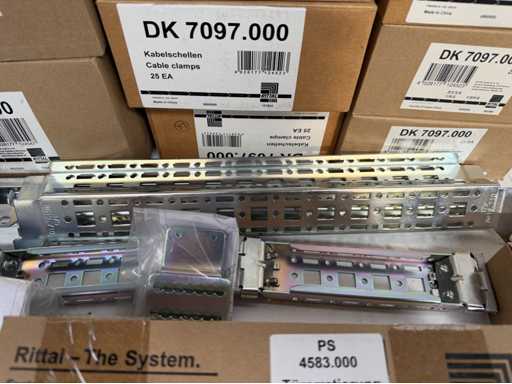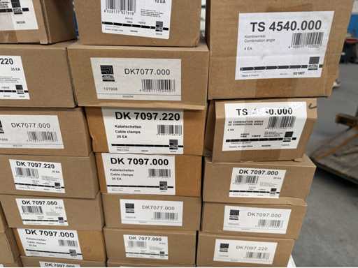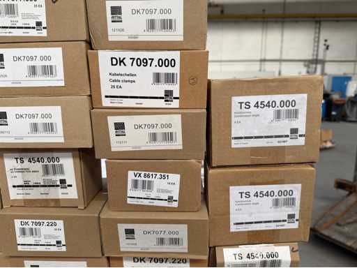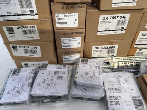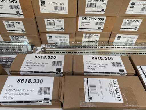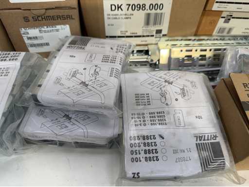 großes Sortiment an Kabelschellen und Scharniere, Schienen; weitere Details siehe Typenschilder von Teilenummern