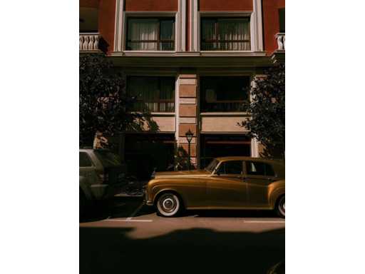 - Außen: Weiße Farbe mit goldener Folie, die für Werbung und Vermietung