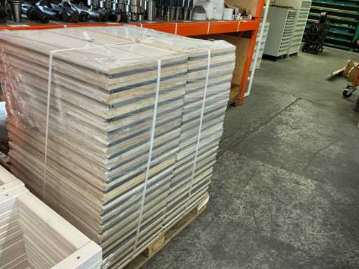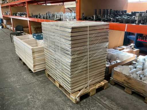 Maße aufrecht: 1750 x 500 x 28 mm/ Regal behandelt mit einer Dicke von 18 mm/ einschließlich: Zubehör wie Befestigungsstifte und Nivellierfüße / auf einer Palette gestapelt und transportbereit; Regalmaße W800 x D500 mm