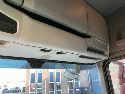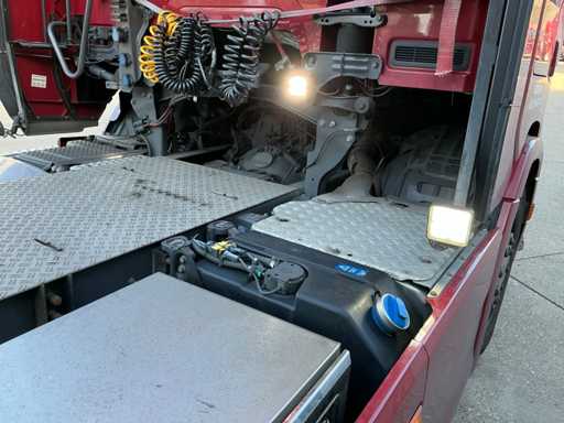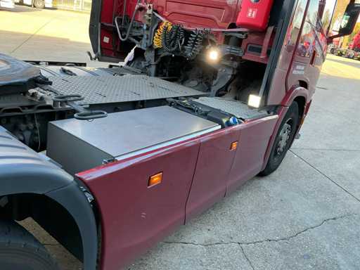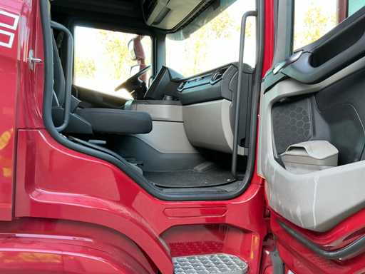 Zulässiges Fahrzeug mit maximaler Masse 19.000 kg, technisch maximal zulässiges Fahrzeug 20.500 kg, maximale Gewichtsmenge 50.000 kg, maximales Anhängerzuggewicht 42.034 kg. Ausgestattet mit luftgefederter Hinterachse, 700-Liter-Kraftstofftank, Spurverlassenswarnung, 24/230-Volt-Wechselrichter, Klimaanlage/Klimaanlage, Kühlschrank, Audio, 1 Bett, Parkheizer, Lichtmaschinendefekt/-defekt.