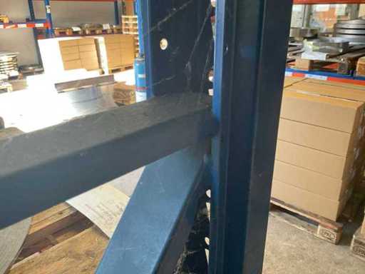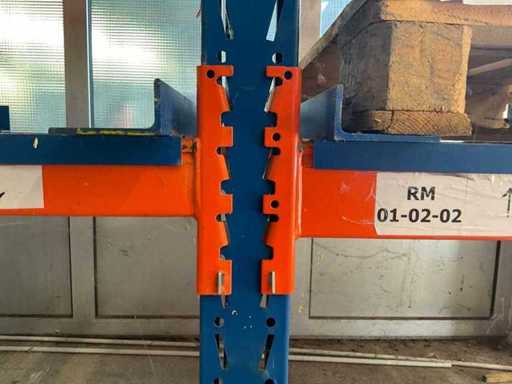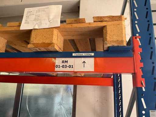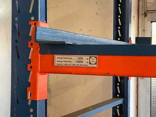 1 Schwerlastregal bestehend aus 3 Ständern, ca. 1100x2500 mm, 6 Traversen, ca. 2700 mm, 4 Traversen ca. 1800 mm, ohne Inhalt, inkl. Paletteneinschübe