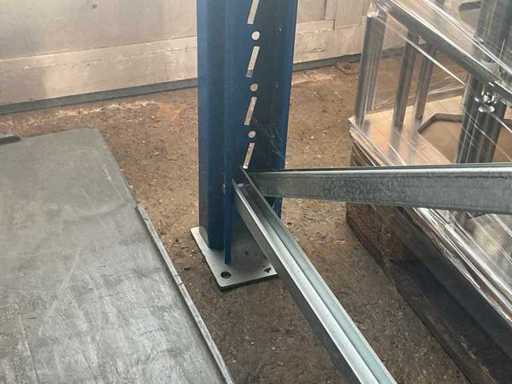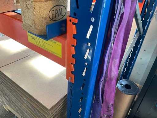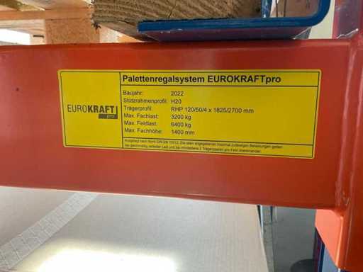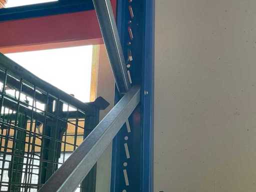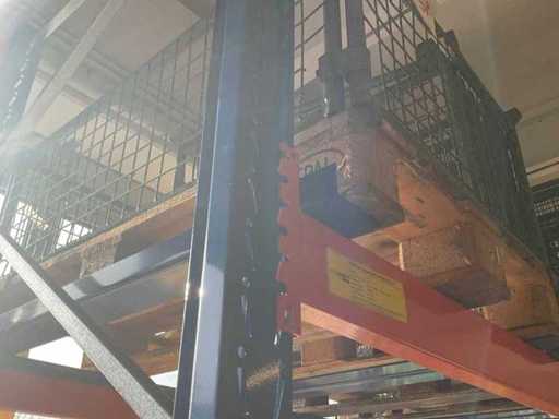 1 Schwerlastregal bestehend aus 3 Ständern, ca. 1100x3400 mm, 8 Traversen, ca. 2700 mm, ohne Inhalt, inkl. Paletteneinschübe
