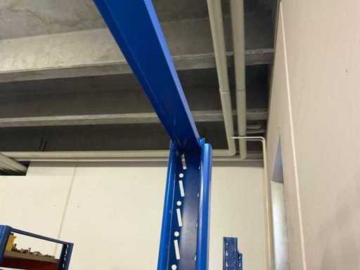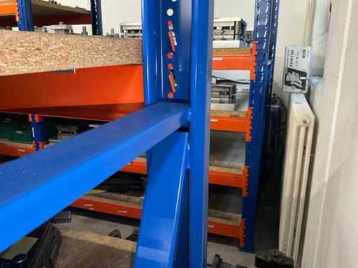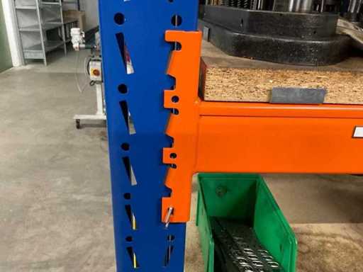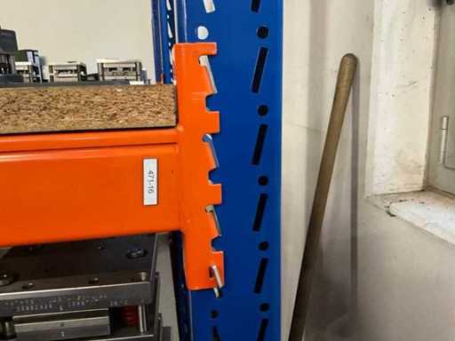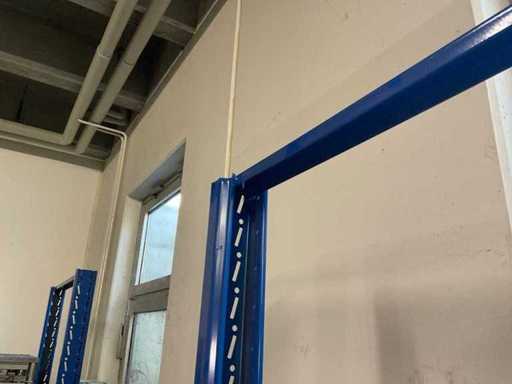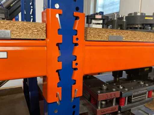 1 Schwerlastregal bestehend aus 3 Ständern, ca. 750x2100 mm, 8 Traversen, ca. 2700 mm, 8 Traversen, ca. 1800 mm, ohne Inhalt