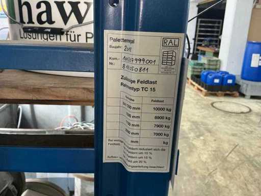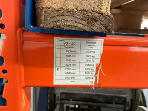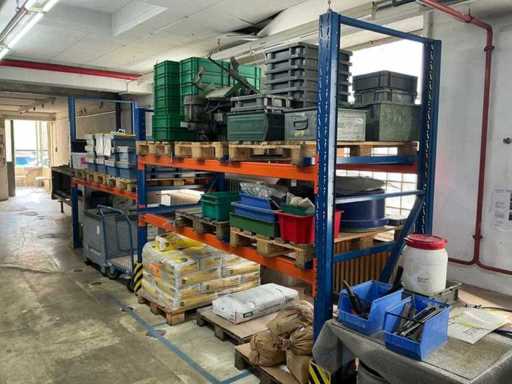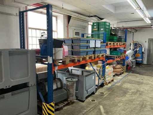 1 Schwerlastregal bestehend aus: 3 Ständern, ca. 1100x2460 mm, 6 Traversen, ca. 2700 mm, ohne Inhalt