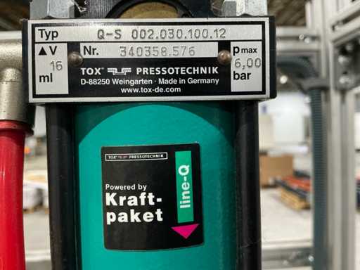 TOX Pressotechnik pneumohydraulische Presse, Modell Q-S 002.030.100.12, Volumen 16 ml, maximaler Druck 6 bar.