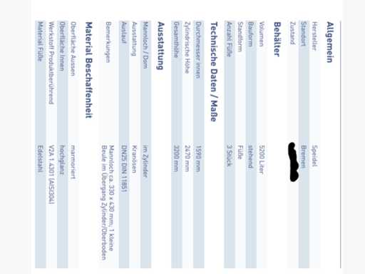 Der Tank ist vollständig aus V2A Edelstahl (Werkstoff 1.4301/AISI 304 gefertigt und für den Einsatz in Lebensmittel-, Getränke-oder Brauereibetrieben konzipiert.