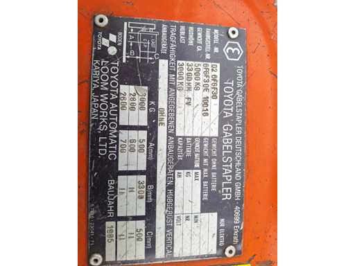 Toyota - 1995 - 02 6FGF30 - Gabelstapler Triplex - Freiheber - Seitenschaltung