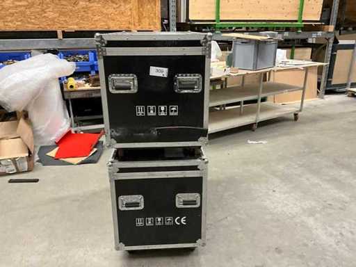 Transportcase (2x) mit je 4 Lenkrollen, innen zweifach geteilt