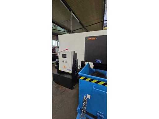 Die Maschine verfügt über einen 96-Werkzeug-Automatikschalter (Hochkapazitätsmagazin), Hochdruckkühlmittel durch die Spindel (70 bar) und ein Chipmanagementsystem mit Förderband und Filtration.