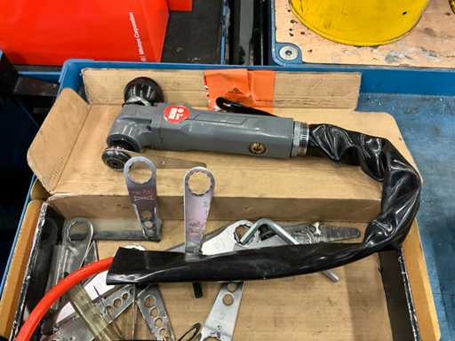 darunter: Nietzangen; zylindrischer Schleifer; Bohrer; 2x Multitool;