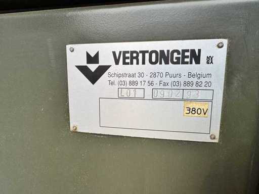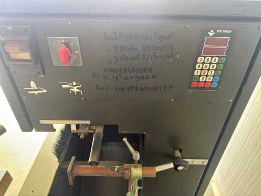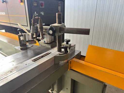 Kompakte Vertongen-Zapfmaschine Ausgestattet mit 2 Achsen: 1 Sägespindel und 1 Frässpindel Sägeschaft: - 400 mm Sägeblattdurchmesser - Sägeblatt mit 30 mm Bohrung - 150 mm horizontale Verdrängung - 130(150)mm Schnitthöhe Spindel: - 50 mm Durchmesser - 440 mm nutzbare Länge - 130 mm horizontale Verdrängung - 380 mm vertikale Verdrängung - 150 mm Mindestfräsdurchmesser - Maximaler Schneiddurchmesser von 360 mm Transportmaße: Länge: 2650 mm Breite: 1400 mm Höhe: 2050 mm