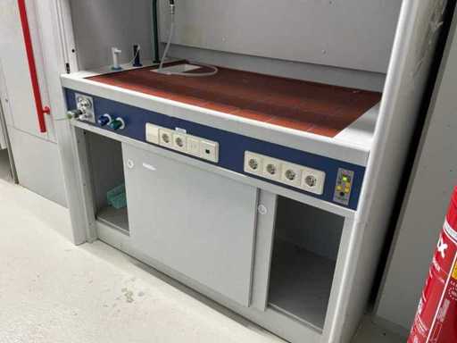 Ausgestattet mit Glasschiebefenster und Schiebetür.