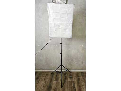 Jedes Set enthält alle notwendigen Komponenten für eine einfache Installation und einen komfortablen Transport, darunter eine 50x70 cm große Softbox mit hochwertigem Diffusionstuch, einen verstellbaren Lampenständer und eine robuste Tragetasche. Die Softboxen verfügen über eine innere reflektierende Silberbeschichtung und einen äußeren weißen Diffusor, wie auf den Bildern zu sehen ist. Alle Produkte sind neu, in der Originalverpackung und sofort einsatzbereit.