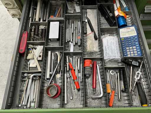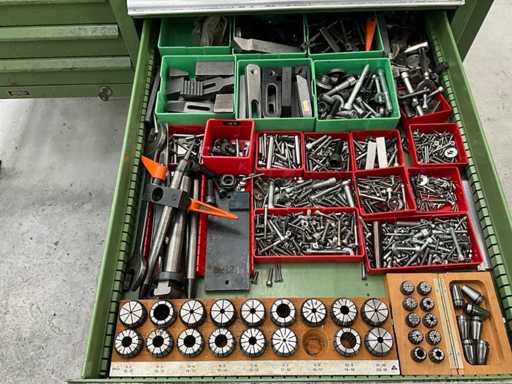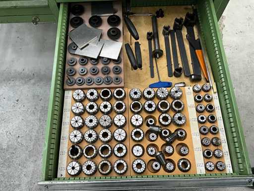 Inklusive Inhalt, bestehend aus verschiedenen Werkzeugen, Werkzeughaltern, Bohrern und Spannzangen;