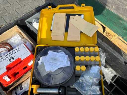 Dazu gehören: Farbsieb, Gummi, Gehörschutz.