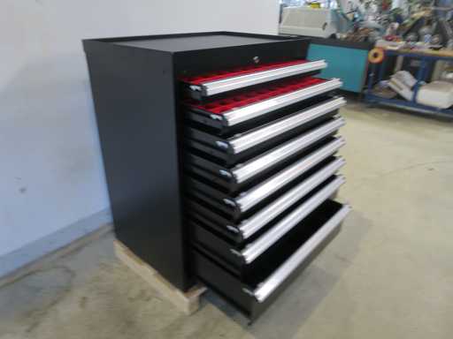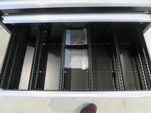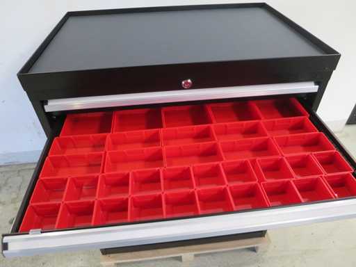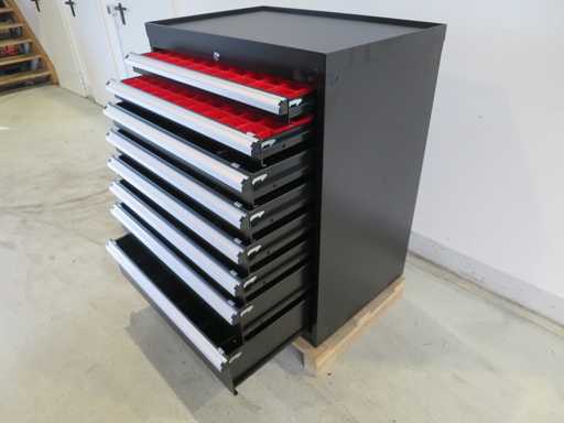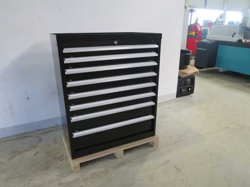 Stabiler Werkzeugschrank mit 8 Schubladen, abschließbar.