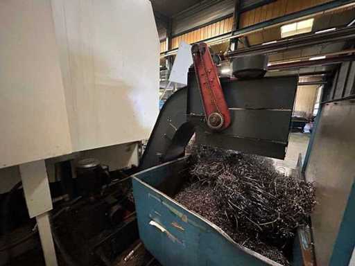 Sichtbare Ausrüstung: Hochleistungs-Drehscheibe, automatischer Werkzeugwechsel (ATC), Späneförderer, hydraulische Antriebseinheit, elektrisches Gehäuse, integrierte Verkleidung