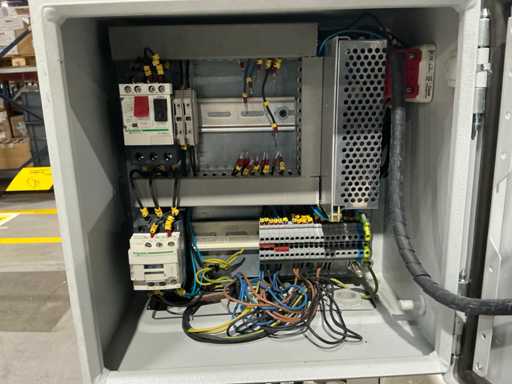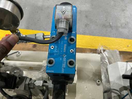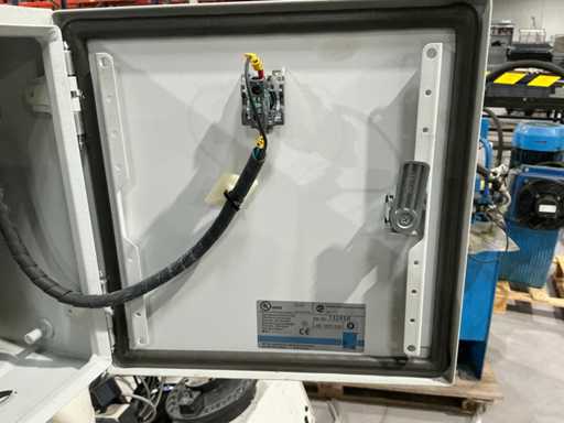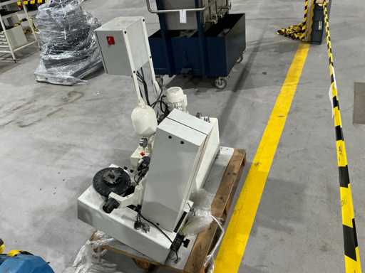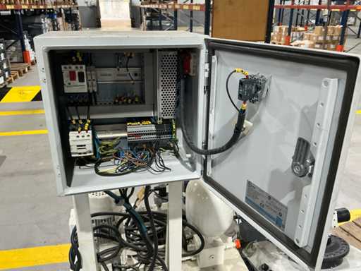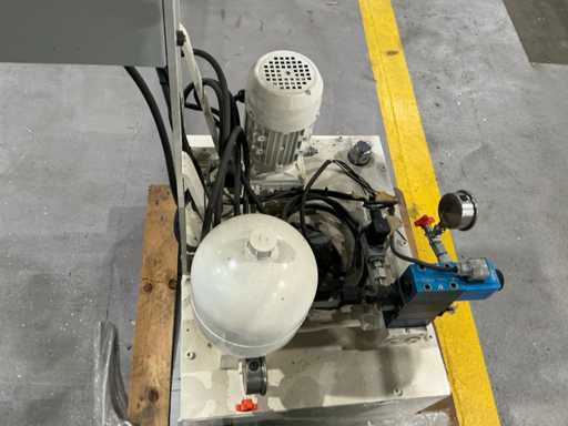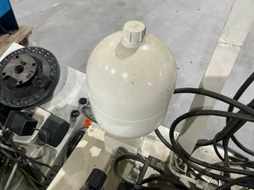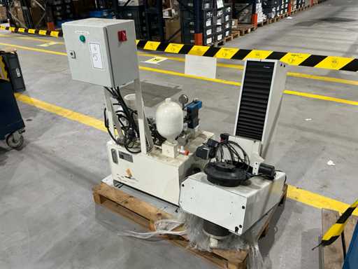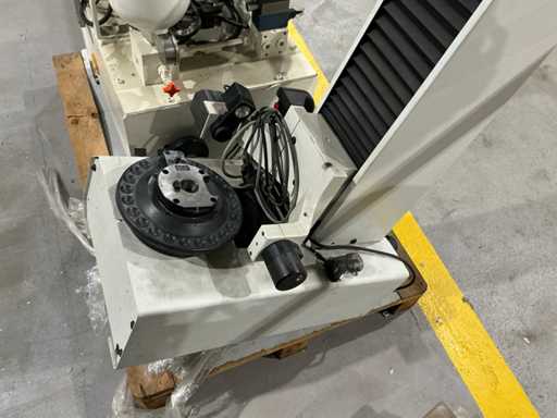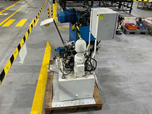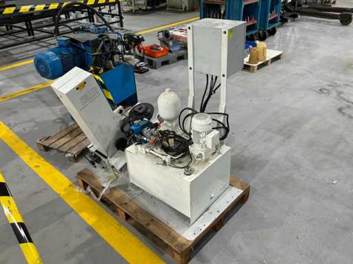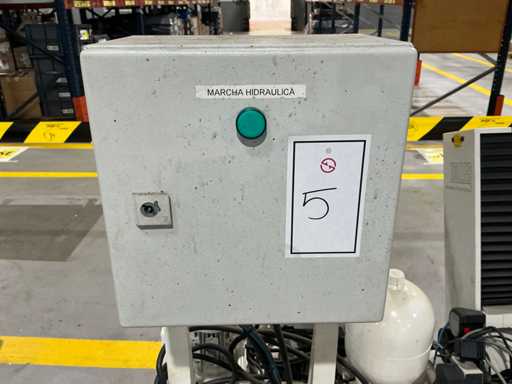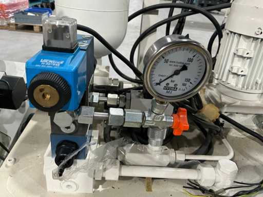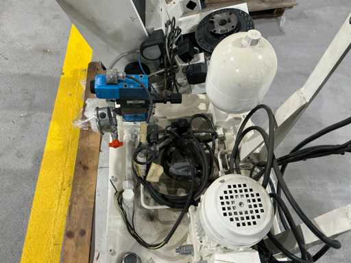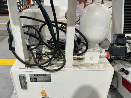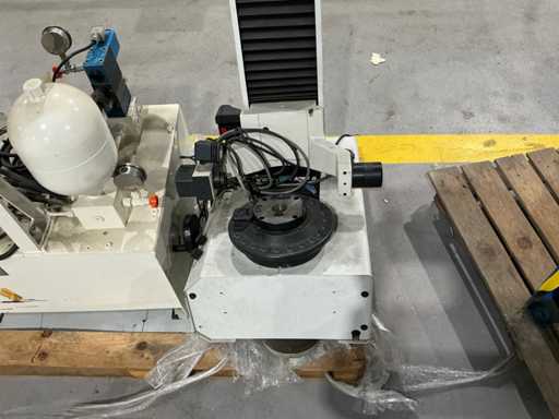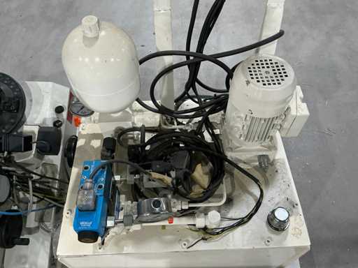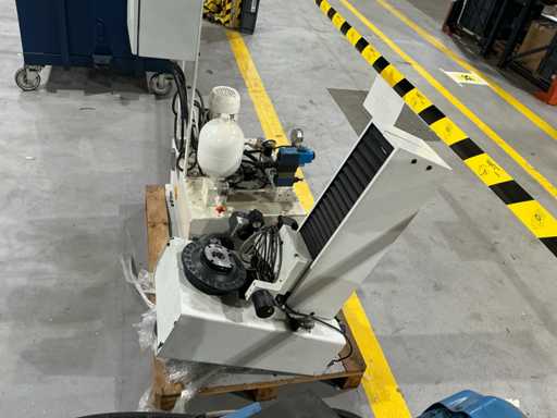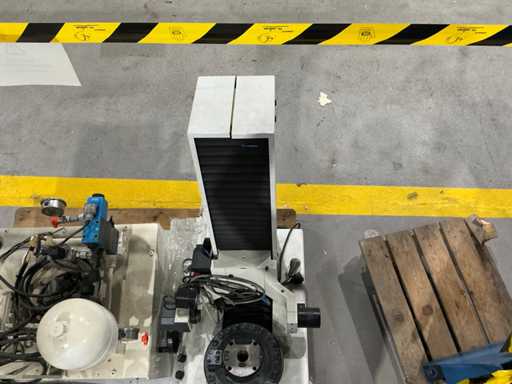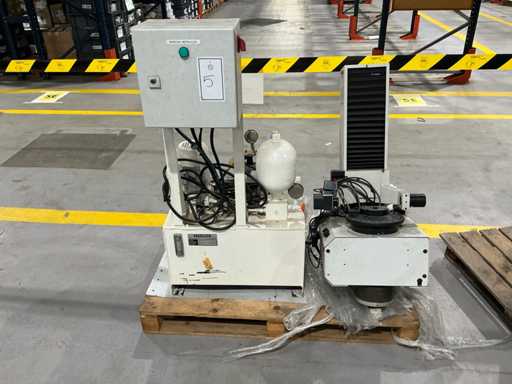 Mess- und Voreinstellgeräte für CNC-Werkzeuge, mit vertikaler Säule, drehbarer Basis und Hydraulikaggregat mit Pumpe, Speicher und Steuerventilen. Inklusive Schaltschrank mit Druckknopf und Zündschlüssel.