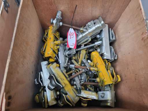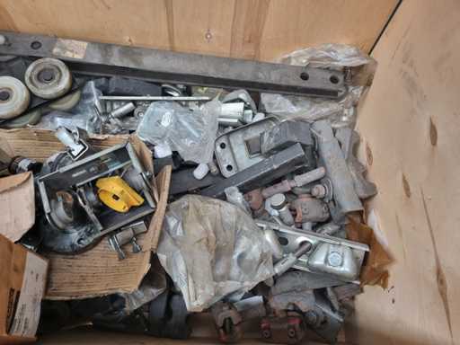 - Beinhaltet: Zugstangen, Laufflächensatz, Beschläge, Stützen und Schrauben, die für die Montage einer Einschienenhängebahn mit Schwelle und Hebezeug erforderlich sind, ähnlich wie bei den Losen 19 und 42 dieser Auktion (ohne Schienen, Schwelle oder Hebezeug).