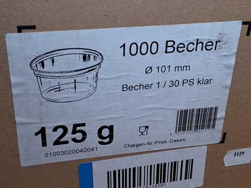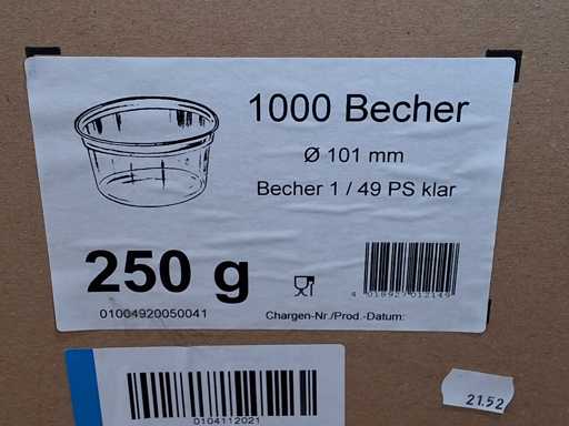 2 pallets beker en rond deksel, PET clear, Ø 101, 225g + 125g, in totaal 45 doosjes