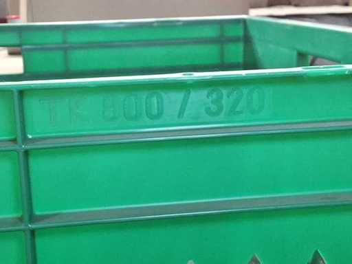 5 euro containers op roestvrijstalen trolleys, geschikt voor voedsel (zie afdruk) type TK800/320, afmetingen per container 800x600x300