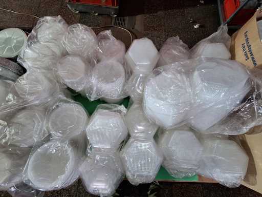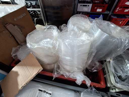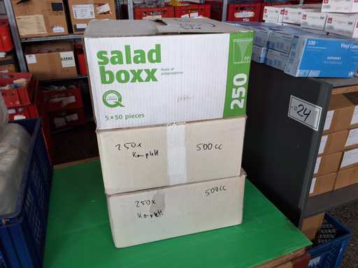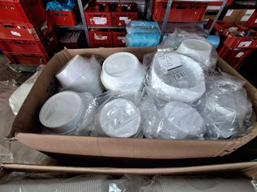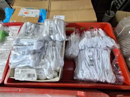 Het grootste deel van de voedselverpakking Premium LINE, wegwerpmessen, vorken, lepelbekers, kopjes, saladekommen, kommen, worstbordjes, aluminium verpakkingen, kommen met deksels, soepkommen, papieren borden, koffiekopjes, koffielepels, kippenzakken en delicatessenzakken