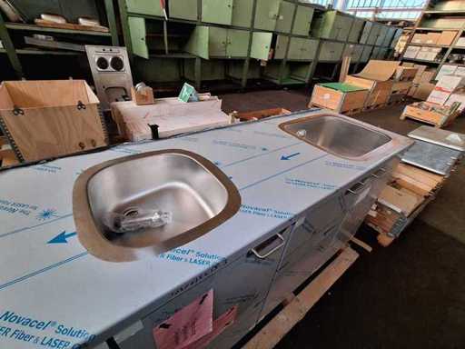 Meiko Spoellijn + Desinfectie - Automatische Topline 40, jaar 2020 ongebruikt! Met vaatwasser + 3 tuitbassins, klaar om aan te sluiten, VDE-getest