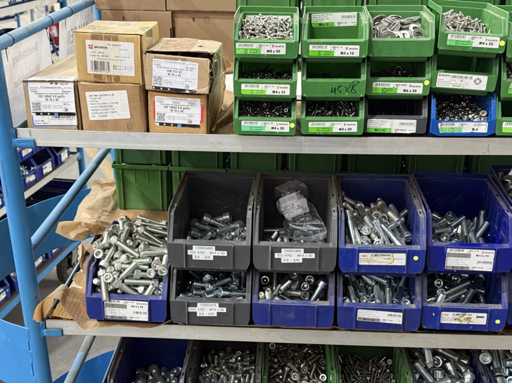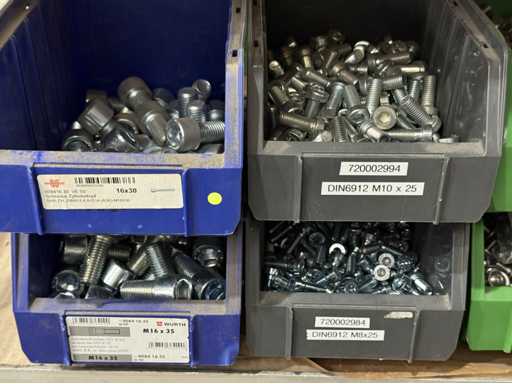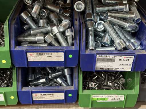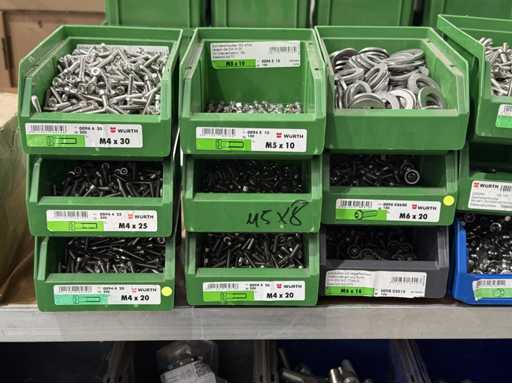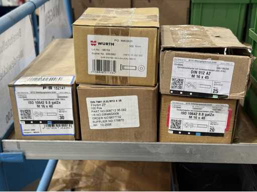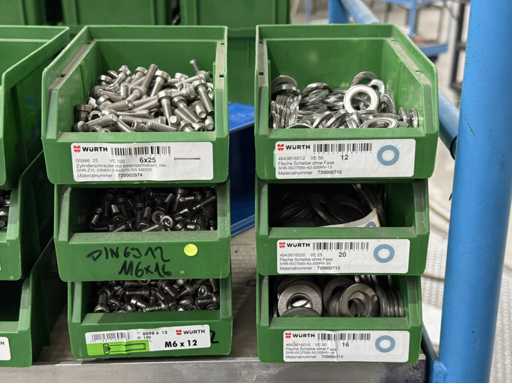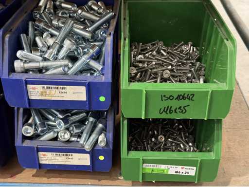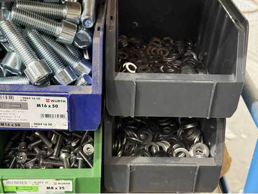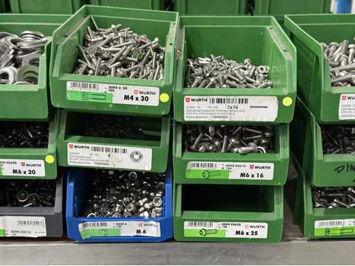 Schroeven in verschillende ontwerpen en maten, materialen: gegalvaniseerd en roestvrij staal; voor meer details zie naamplaatjes, LET OP: Alleen plastic dozen en schroeven voor levering bezorgen, plankkarretje valt niet onder de bezorging