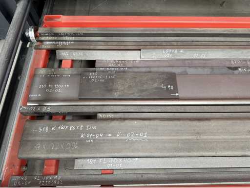 Inhoud van de plank: assortiment constructiestaal in verschillende maten, lengtes en ontwerpen; voor meer details, zie foto's; Totale inhoud van zeven lades