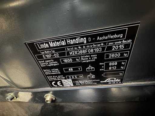 03/2018 Service + UVV 01/2027 Linde E16P Triplex 547cm 3e + 4e klep elektrische heftruck 6.670 uur