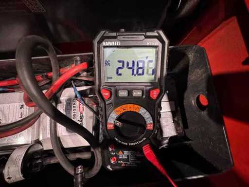 - Accu: 25/05/2024 24V 166Ah, met zeer goede prestaties gemeten van 24,8V - Opvouwbaar platform