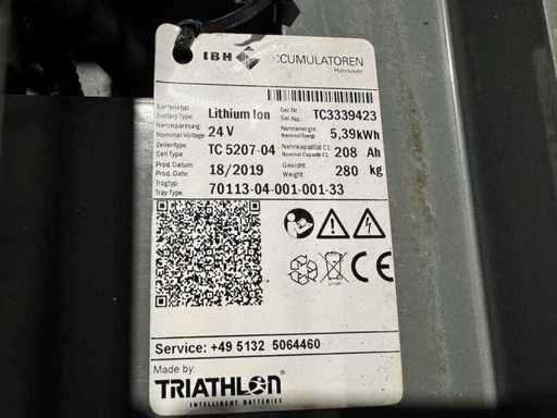 - Batterij: LI-ION 18/2019 LI-ION 24V 208A, met goede prestaties, gemeten op 25,5 volt