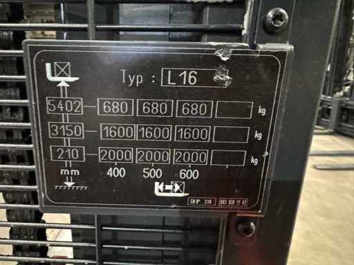 18/2019 Service + UVV 01/2027 Linde L16I LI-ION Lithium 1,600kg Triplex 531cm Pallettruck Mierenstacker Initiële Liftschaal