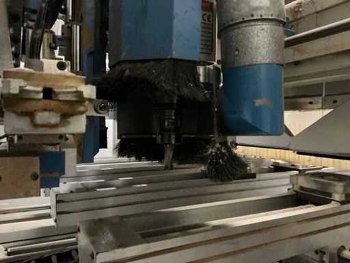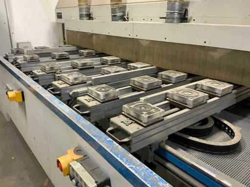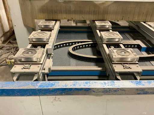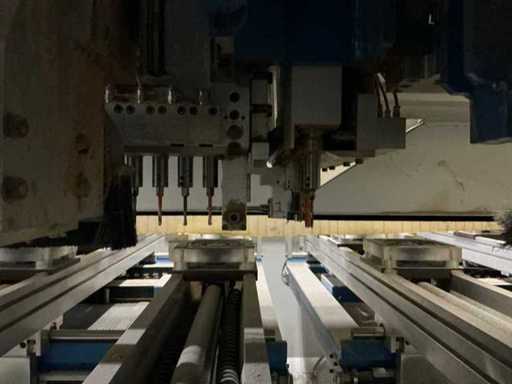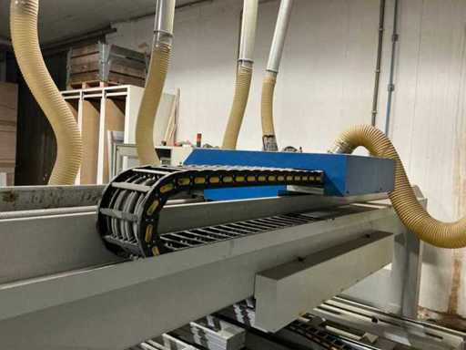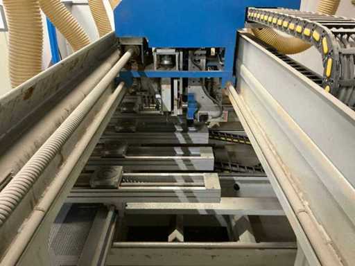 Voorzien van vacuümtafel en veiligheidskooi, Maximale werkbreedte 290 cm, voorzien van 16 gereedschap wisselstations, horizontaal / verticaal boren, zagen en frezen, Holtrop & Jansma filterafzuiginstallatie (Holtrop & Jansma DBF, 585kg, bouwjaar: 2000) uit 2000 en schakel/ besturingssysteem zijn inbegrepen