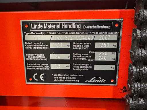 20/2017 Dienst +UVV 09/2026 Linde L14 1,400kg Triplex 470cm Pallet Truck Ant 3,395 uur