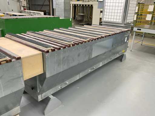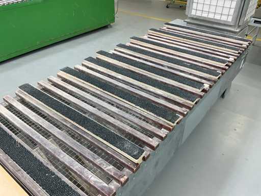 tafel afm. ca. 2500x1000 mm; v.v. gegalvaniseerd stalen filterkast