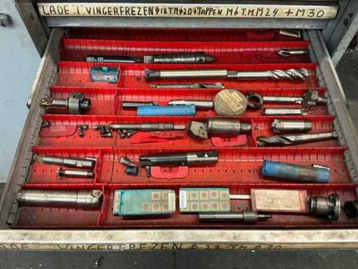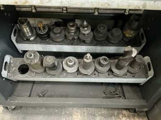 Voorzien van: divers gereedschap, spanentransporteur, koeling via spindel, vingerfrezen, snelstaalboren, CNC-Besturing, frezenhouder in machine, gesloten kooiconstructie, precisie afstandsbediening voor bepalen nulpunt