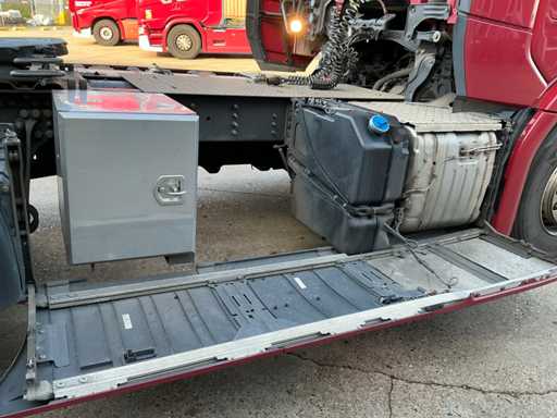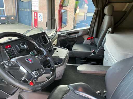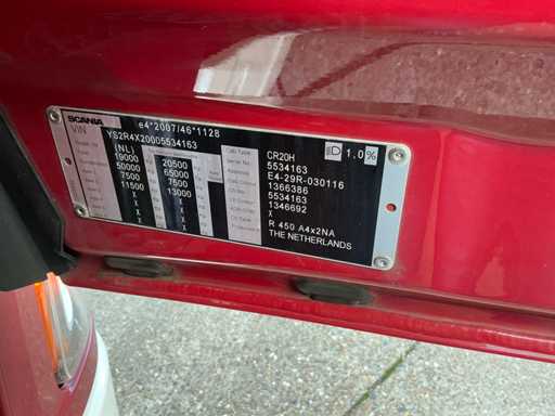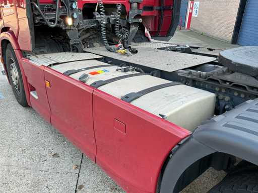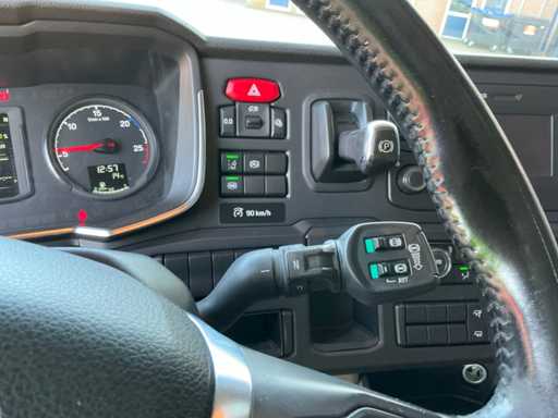Wettelijke max massa 19000kg, technische max massa 20500kg, max massa samenstel 50000kg, max oplegger trekgewicht 41489kg. Voorzien van retarder, luchtgeveerde achter-as, 1000 liter brandstoftank, climatecontrol/airco, 2 bedden, koelkast, audio, lane departure warning, 24/230 volt inverter, BE-GE chauffeur stoel, koelkast, standverwarming.