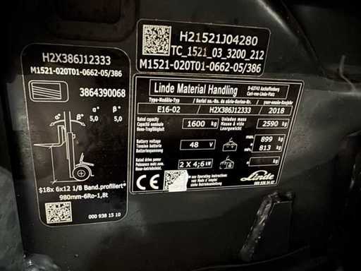 2018 Service + UVV 01/2027 Linde E16 EVO LI-ION Lithium 1,600kg Triplex 662cm elektrische heftruck 9,242 uur