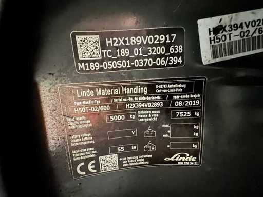 2019 Service 01/2027 Linde H50T Triplex 666cm 3e + 4e klep Vork Adjuster Cabine Vork Gas Vork Heftruck