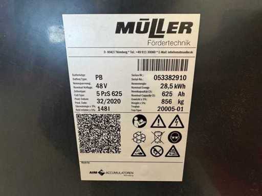 Accu: 48V/5PzS/625Ah, met zeer goede prestaties; gemeten met 50,04V