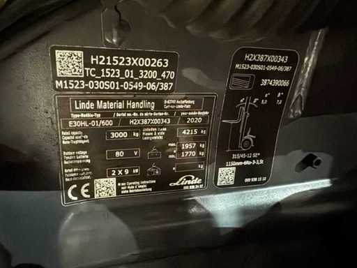 2020 Service + UVV 01/2027 Linde E30-HL Triplex 3rd + 4th Fork Adjuster Electric Forklift 11.450 uur
